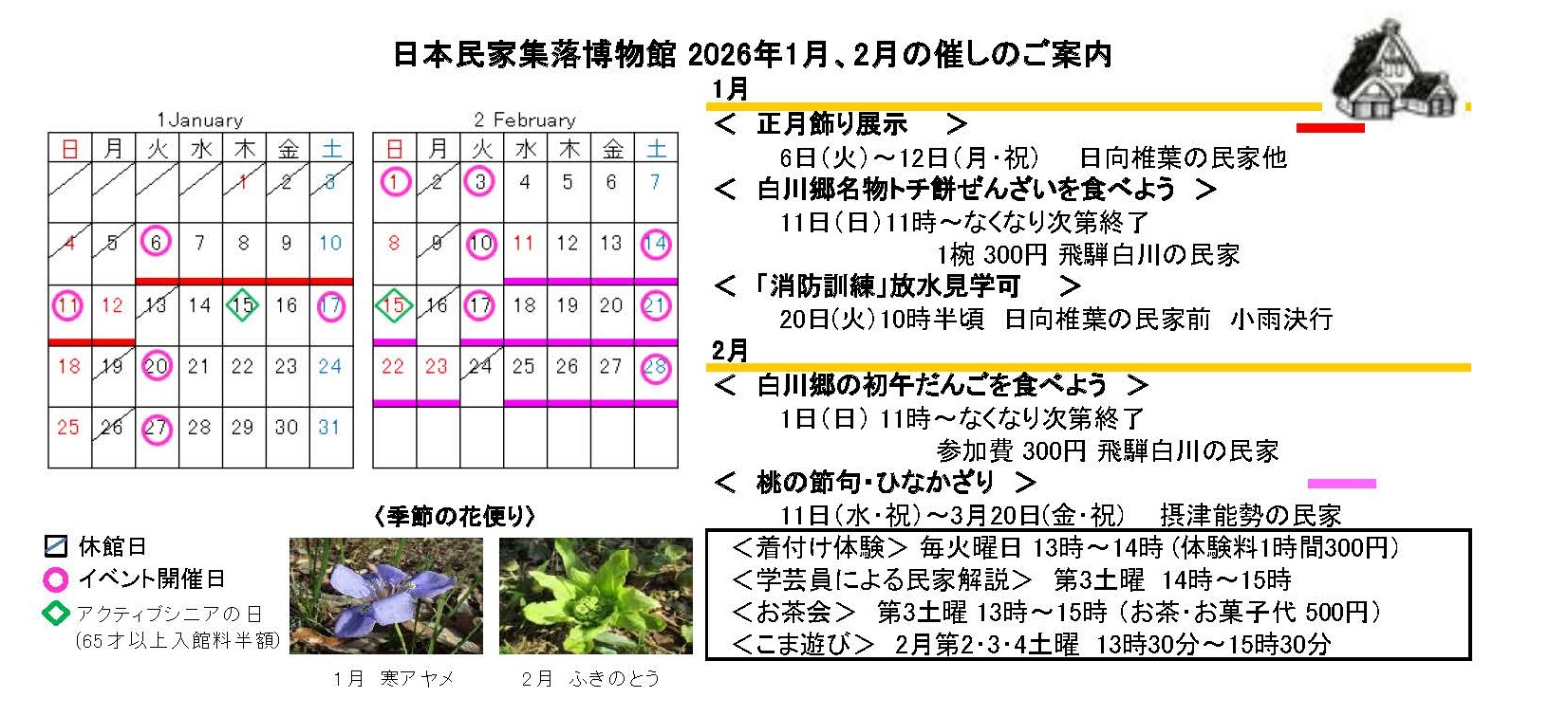 令和8年「1月・2月の催し」